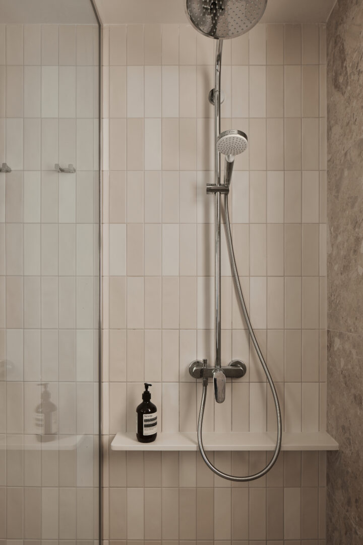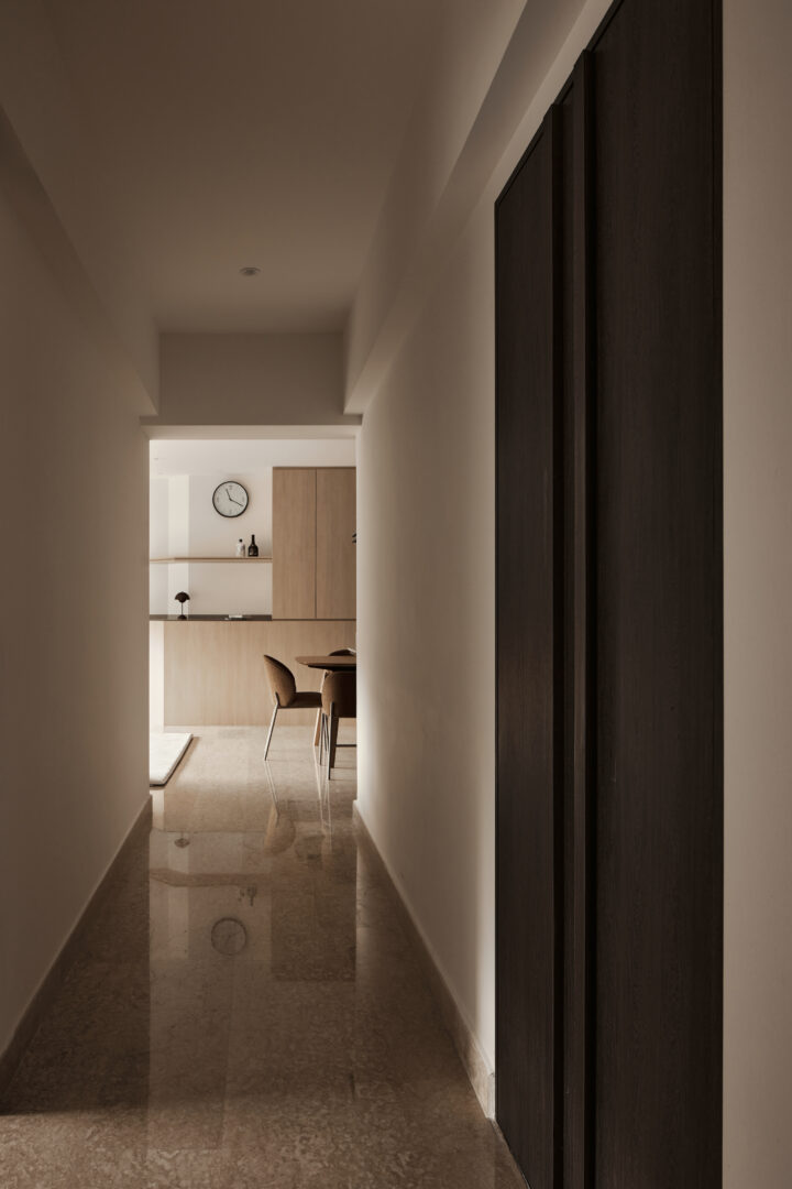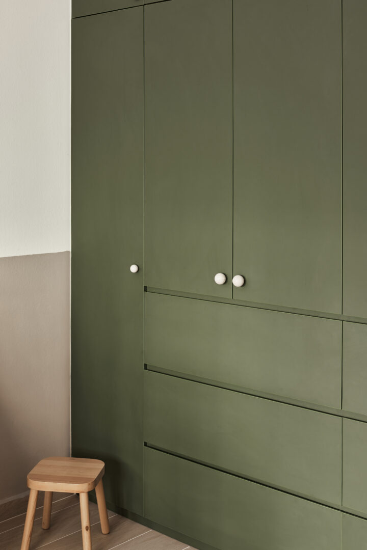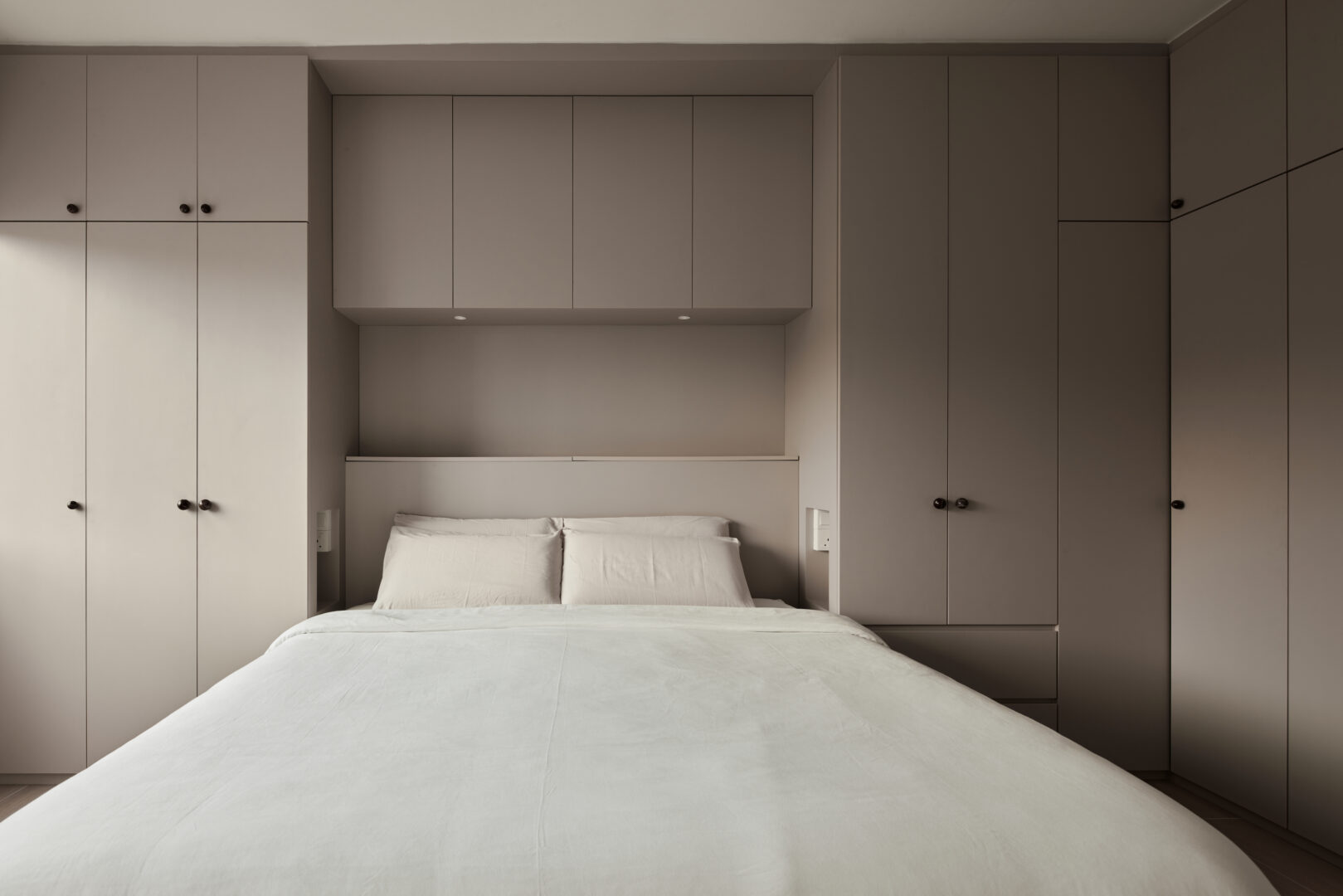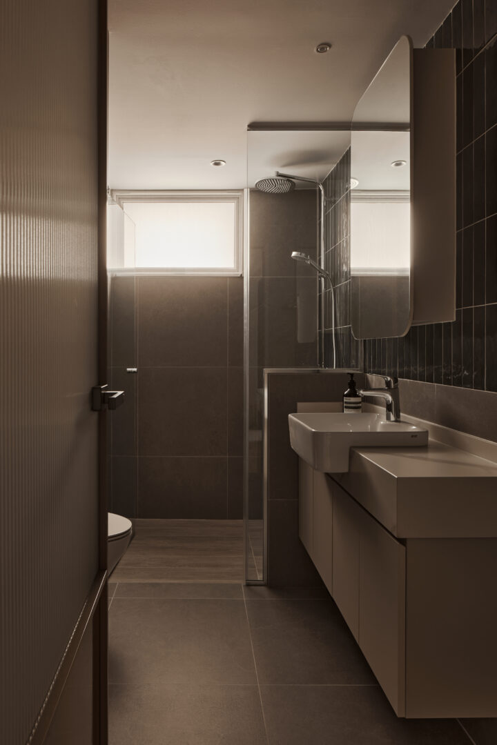 One particular spatial challenge we had was having to work around a large structural concrete block right in the centre of the living area. By integrating much-needed storage and additional counter space with a built-in TV console, the overall structure has now blended seamlessly with the rest of the home.